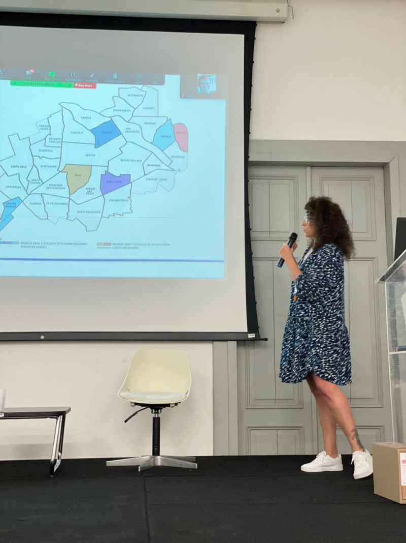A Mariana Diniz, que cursa o doutorado em Planejamento do Território na Faculdade de Engenharia da Universidade do Porto, além de colaborar com Thiago, também apresentou o trabalho "Identificando tipomorfologias: um exercício de classificação da forma urbana", desenvolvido no Centro de Investigação do Território, Transportes e Ambiente. "É motivo de grande orgulho participar do PNUM acompanhada pelas professoras Sirlei e Maria Paula, e pelos alunos Thiago e Beatriz. Participei de outras edições do evento. A primeira foi em 2017, quando apresentei o meu TCC, sob a orientação da Sirlei. Trata-se de uma valiosa oportunidade para os alunos do curso de Arquitetura da FAG apresentarem e publicarem seus trabalhos", diz.