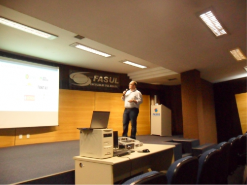 No sábado (16), os Cursos de Sistemas de Informação e de Redes de Computadores da Fasul realizaram, em conjunto, um suas atividades integradoras. Essa atividade consistiu em contatos institucionais realizados com representantes de duas empresas, a Maxicon Sistemas Ltda. e a JunSoft Sistemas de Informática Ltda. As apresentações realizadas por essas duas empresas foi uma oportunidade ímpar para aproximar os acadêmicos do universo corporativo da tecnologia da informação.