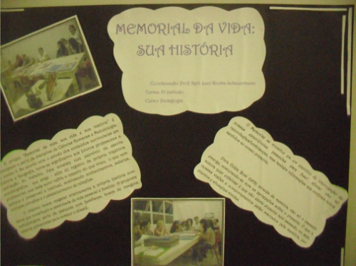 De acordo com o estudo dos conteúdos curriculares em História e Geografia, a partir da disciplina de Ciências Humanas e Metodologia do Ensino II, a professora Keili Lucí Rocha Scheuermann propôs, com o 5º período de Pedagogia a construção de um Memorial da Vida. Este consiste num exercício da escrita autobiográfica que exige, além do registro da própria trajetória profissional, que cada autor reflita a respeito do que viveu mobilizando conhecimentos, saberes, crenças, emoções. Trata-se de uma perspectiva que pressupõe um sujeito protagonista de sua história de vida e de formação que estabelece uma relação da importância de conhecer os aspectos que constituem a própria caminhada, sendo um suporte a atuação.