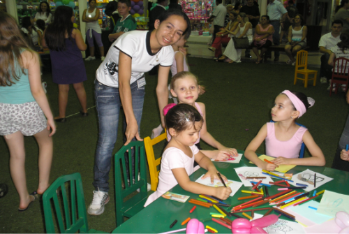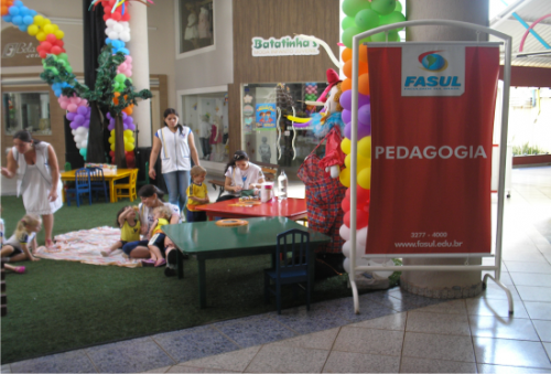 Realizando atividades lúdicas com as crianças, o Curso de Pedagogia da Fasul participou da “Semana da Criança” promovida pelo Shopping Panambi, de Toledo. Os acadêmicos atenderam as crianças com jogos pedagógicos, pintura facial, oficina de bichinhos com balões e contação de histórias.