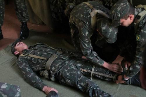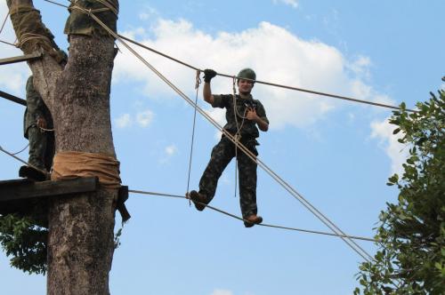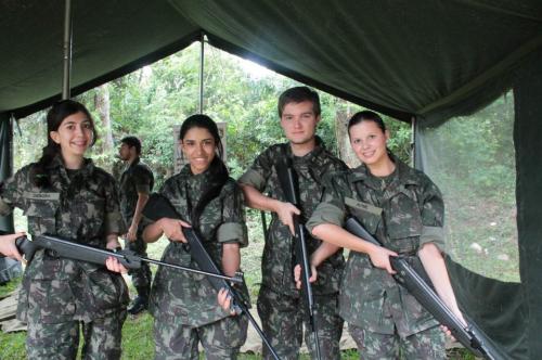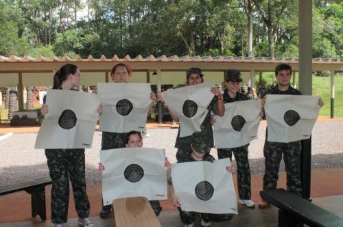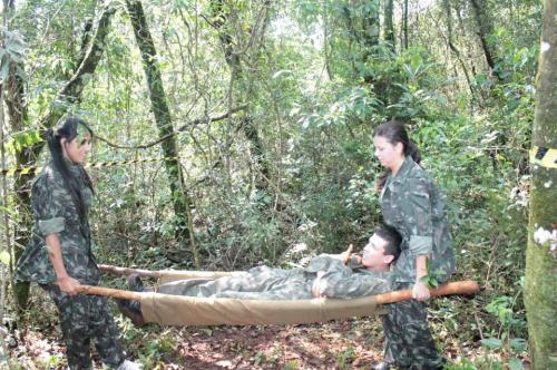 Nos três últimos dias, iniciaram as atividades práticas, na segunda-feira (22) os estudantes aprenderam noções sobre primeiros socorros em situação de combate, nós, amarrações, além de cumprir uma pista de cordas, na sequência tiveram aulas de tiro.