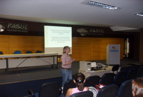 No último sábado (27), no auditório da Fasul, os acadêmicos do 2º período do Curso Superior de Tecnologia em Processos Gerenciais, participaram da palestra com o tema “Gestão de Negócios Bancários”, com a palestrante Alini Bini.