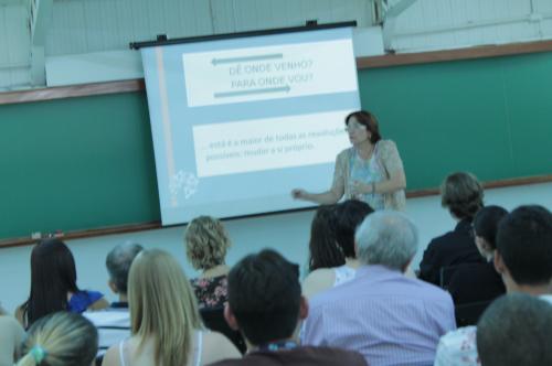 A quarta-feira (30), os docentes e coordenadores participaram de um debate com o tema “O segredo é a alma do negócio”, ministrado pela professora, Heloisa Helena Minghini.