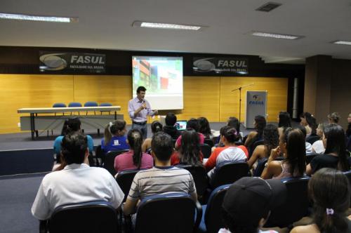 Na noite desta segunda-feira (25) os intercambiários Brad Hunter, dos Estados Unidos, bem como Garazi Fernandino, bolsista da Espanha, estiveram no auditório da Fasul, para realizar um relato de suas experiências vivenciadas no país de origem e o que estão aprendendo no Brasil.