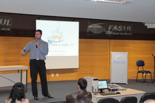 Iniciou nesta segunda-feira (06) o XII encontro de Tecnologia da Informação no auditório da Fasul que conta com a palestra de abertura com o tema “IPV6”, ministrada pelo professor, doutor, Neylor Michel. Durante a terça e quarta-feira haverá o minicurso sobre VLAN (Lan Virtual), na quinta e sexta os acadêmicos participarão de um minicurso sobre programação para internet e dispositivos móveis.