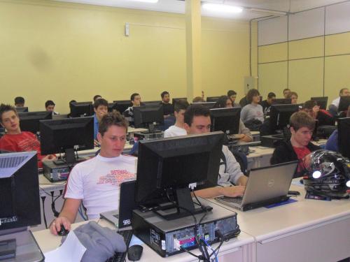 Durante esta a terça (07) e quarta-feira (08) os acadêmicos de Sistemas de Informação e do curso tecnólogo em Redes de Computadores estão participando de minicursos, nestes dois dias o tema é VLAN (Lan Virtual). Na quinta e sexta os acadêmicos participarão de um minicurso sobre programação para internet e dispositivos móveis. Os estudantes estão trocando experiências de forma prática com as atividades nos laboratórios próprios.