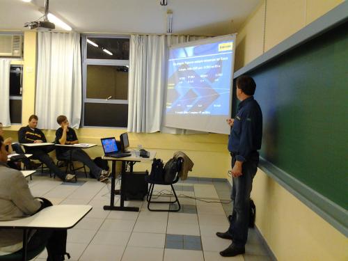 Na ultima segunda-feira (03), os acadêmicos do 7º período do curso de Administração e do 5º período de tecnologia em Agronegócio reuniram-se para assistir à palestra sob supervisão do professor, Vanderley de Oliveira, ministrada pelo profissional da ATNC - Regional Banco do Brasil de Toledo, Engenheiro Agrônomo, Afonso Schneider.