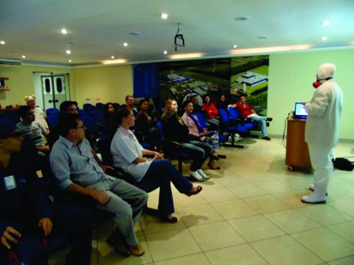 A visita inciou com uma apresentação das áreas de negócio da empresa em relação a cadeia produtiva do frango. Em seguida os estudantes foram encaminhados para a visitação in loco do processo de abate de aves.
