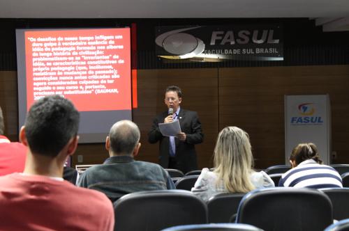 Na noite desta segunda-feira (01) os docentes e coordenadores da instituição estiveram reunidos para a Semana Pedagógica do segundo semestre de 2013. Os professores assistiram à palestra ministrada pelo professor, pós-doutor em educação, Alvori Ahlert que abordou o tema “Por uma ressignificação do ensino-aprendizagem na sala de aula”.