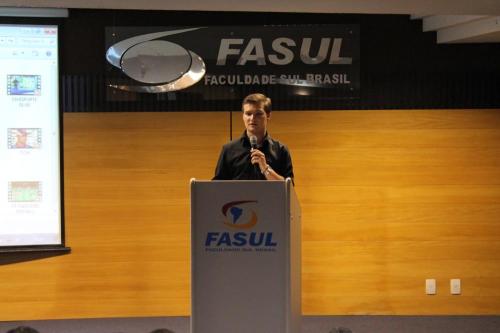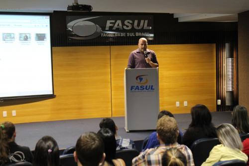 Os Jornalistas egressos da instituição Alvaro Soares e Giovan Valiati ministraram na ultima sexta-feira (28), uma Aula Magna para os acadêmicos do curso de Jornalismo. O evento foi realizado no auditório da Fasul.