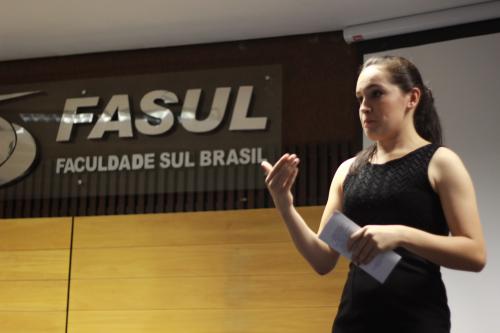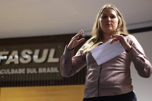 O assunto da oratória possuía a classificação livre e o acadêmico podia escolher o tema que seria abordado. Dos mais diversos aos mais polêmicos, as opiniões foram fluindo. Segundo a acadêmica do 1º período, Denise Caroline, o tema livre permitiu realizar uma introdução algo de seu interesse. “Informei meus colegas de algo que achei importante. Essa foi minha intenção. Sou Diabética e escolhi falar um pouco dessa doença que poucas pessoas conhecem. Fiquei um pouco insegura devido ao assunto ser, de certa forma, pessoal. Mas no final das contas, não foi tão assustador quanto parecia ser,” explicou a aluna.