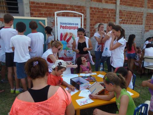 Os alunos aplicaram diversas atividades para as crianças da comunidade. A tarde estava repleta de brincadeiras, jogos, atividades pedagógicas e lúdicas. Segundo a coordenadora do curso de Pedagogia, Doralice Diniz, esse tipo de atividade é uma experiência de prática educacional valiosa para a complementação da formação de futuros pedagogos. “Esse formato de atividade é um momento de contato com as crianças, de atendimento aos pais, de estar junto da comunidade em que poderão atuar após a conclusão do curso”, explicou.