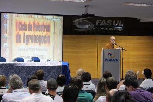 Na noite desta quarta-feira (05) os acadêmicos e a comunidade externa, participaram da abertura o I Ciclo de Palestras de Agronegócio. A noite contou com a apresentação cultural do coral Voz Ativa, da Feliz Idade da cidade de Missal, seguido da palestra do secretário da Agricultura de Toledo, José Augusto de Souza que abordou o tema “O Agronegócio em Toledo: Cenários e Perspectivas”.