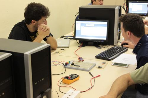 Durante a semana os acadêmicos participaram de minicursos ofertados por profissionais da área de desenvolvimento de aplicativos e micro controladores.
