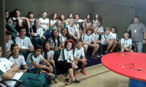 Na manhã desta terça-feira (10) o curso de Comunicação Social, recebeu a visita de uma turma do SESI, apresentando a eles toda a estrutura de laboratórios de TV, Rádio, Fotografia e Agência Experimental. O professor do curso de Jornalismo, Ricardo Morante, recebeu os estudantes que depois da visita realizaram um bate papo sobre a profissão, sanando dúvidas referentes à produção de conteúdos informativos, características das mídias e da imprensa.