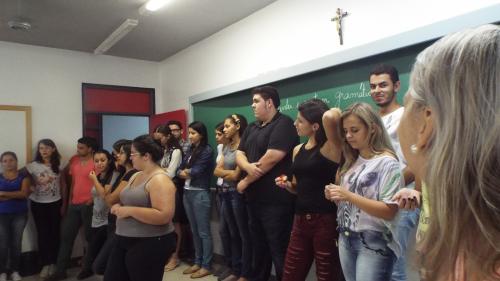 Os estudantes receberam os novos colegas com brincadeiras em língua portuguesa e libras. A confraternização teve o objetivo de integrar os grupos e criar uma atmosfera favorável aos novos alunos na caminhada que se inicia.