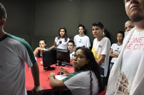 Na tarde sexta-feira (13) o curso de Comunicação Social, recebeu a visita de uma turma do SESI, apresentando a eles toda a estrutura de laboratórios de TV, Rádio, Fotografia e Agência Experimental.