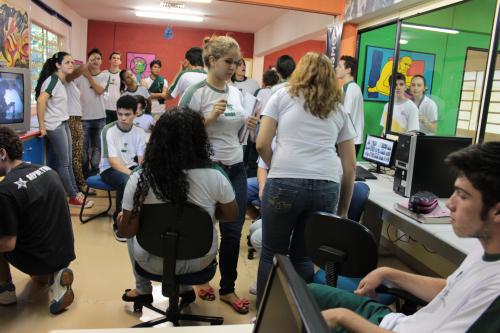 O acadêmicos do curso de Publicidade e Propaganda, receberam os estudantes que depois da visita realizaram um bate papo sobre a profissão, sanando dúvidas referentes à produção de conteúdos informativos, características das mídias e da imprensa.