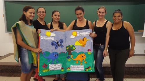 Além das histórias, os acadêmicos desenvolveram materiais e estratégias para a realização da atividade. Utilizaram materiais de diferentes naturezas, produziram livros gigantes, cenários e recursos para tornar a atividade rica e produtiva.