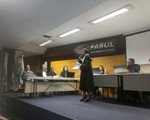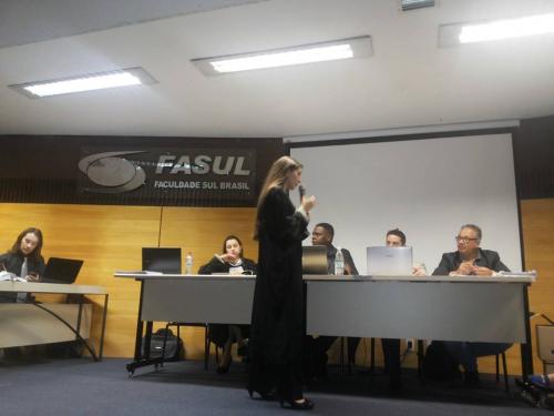 Os estudantes do 6° Período do curso de Direito realizaram um Júri Simulado no dia 15 de maio. O objetivo da atividade foi colocar em prática o que os estudantes aprenderam em sala de aula, com teorias.