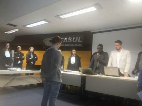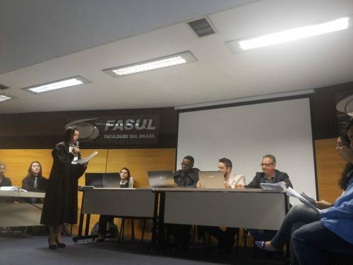 Os jurados eram alunos do 5º e 3º períodos. Na data, foi realizado o sorteio e escolha dos jurados, como ocorre na lei, ocorrendo o interrogatório do réu e em seguida, os debates pela acusação e defesa, com réplica e tréplica. Dando sequência, foi executada a votação dos jurados, de acordo com a lei e como acontece em um júri real. “A estudante que fez o réu chorou, assim como ocorreu na audiência real”, enfatizou Camila.