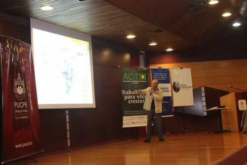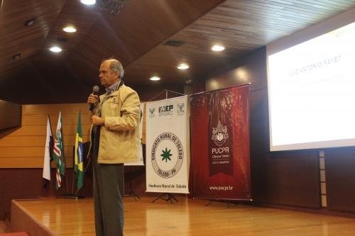 A palestra ocorreu no auditório da Pontifícia Universidade Católica do Paraná (PUC-PR) e foi promovida pela Associação Comercial e Empresarial de Toledo (Acit), Sindicato Rural Patronal de Toledo, Sistema FAEP, Programa Oeste em Desenvolvimento, Caciopar e PUC-PR. O evento reuniu cerca de 200 pessoas em busca das informações transmitidas por um dos maiores conhecedores das virtudes e deficiências estruturais do Paraná e do Brasil.