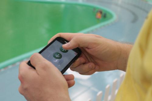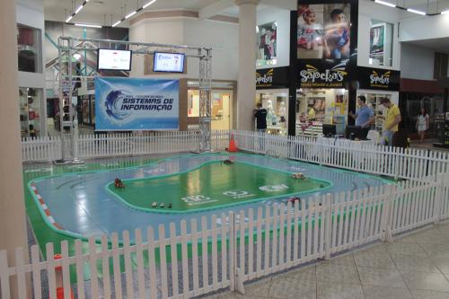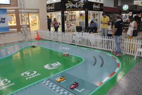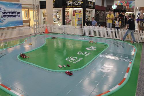 O projeto de Corrida de Carrinhos foi desenvolvido com controles via Androide. São dois carrinhos controlados pelos celulares dos participantes, que ao chegar no shopping, podem fazer o download do aplicativo. Os carrinhos são monitorados por um software de supervisão que mostra a aceleração, quantidade de voltas totais e tempo de cada volta por participante. As placas eletrônicas foram desenvolvidas exclusivamente pelos alunos para os carrinhos.