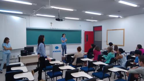 No dia 12 de agosto, a segunda turma de estudantes do terceiro ano do Colégio Estadual Atílio Fontana conheceu as estruturas da Faculdade Sul Brasil (Fasul). Recepcionados pelas colaboradoras da instituição, Iris Maria Leite Chagas, Marli Fialho e Maristela Bendo, os estudantes passaram por todos os ambientes da instituição sendo instruídos sobre os cursos disponíveis.