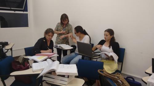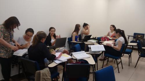 Para essa tarefa, os acadêmicos executam o exercício de passar os textos para Glosas, utilizadas para dispor as palavras do português, na mesma sequência da sinalização de libras, para, em seguida, fazerem a tradução sinalizada.