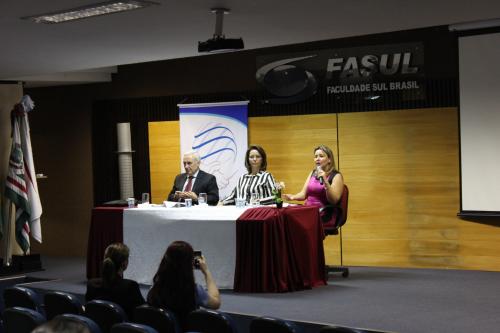 Com o tema “Justiça Restaurativa: um novo paradigma de distribuição de Justiça”, os professores Rodrigo Rodrigues Dias e Denise Krueger mediaram o painel com as palestrantes Laryssa Angélica Copack Muniz e Claudia Catafesta.