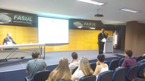 No dia 23 de outubro, os estudantes do curso de Administração e Direito da instituição receberam o Dr Sandres Sponholz e o Dr Alex Fadel, ambos promotores de Justiça no município.
