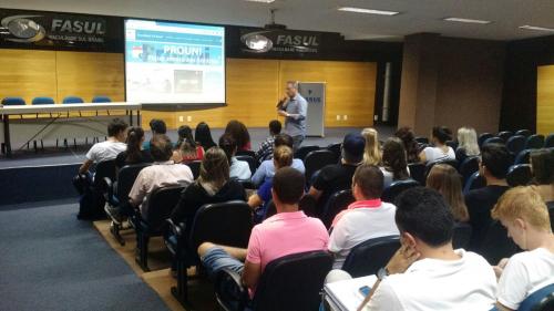 Os novos acadêmicos da Faculdade Sul Brasil (Fasul) prestigiaram o projeto “Primeiros Passos”, na quinta-feira, dia 25 de fevereiro, no auditório da instituição. O objetivo do projeto é mostrar aos calouros que ingressam em 2016 o que a instituição tem a oferecer.