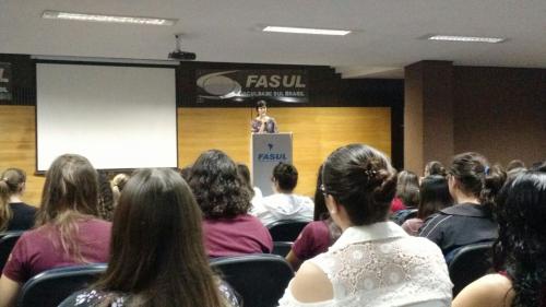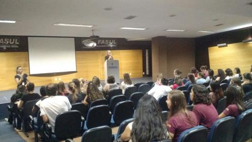 O curso de Letras Libras da Faculdade Sul Brasil (Fasul) realizou na segunda-feira, dia 14 de março uma aula magna com o tema “Retórica e a Formação do Docente”, no auditório da instituição.