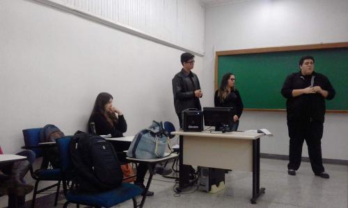 Os estudantes foram orientados pela professora Ângela Maria Cottica, na disciplina de Prática Pedagógica V. “Desenvolvidos os assuntos propostos junto aos acadêmicos do curso de Letras, a retomada e o aprofundamento de questões já abordadas em diferentes disciplinas do curso foram enfatizadas. Os grupos que se apresentaram demonstraram competência, compromisso e respeito para com ao outros acadêmicos e professores pela qualidade de sua preparação”, explicou Ângela.