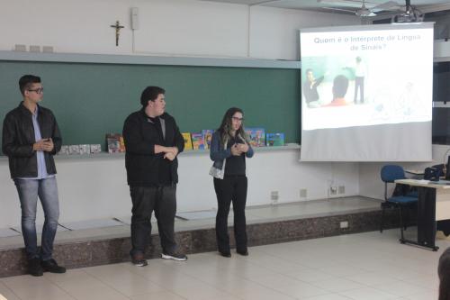 Com o objetivo de participar do projeto de extensão para propiciar aos acadêmicos a prática da docência, ao mesmo tempo, procura estreitar as relações do curso com a comunidade local e regional, disseminar a Libras e a cultura surda junto aos futuros profissionais da educação, destacando a importância de os professores serem conhecedores da língua.
