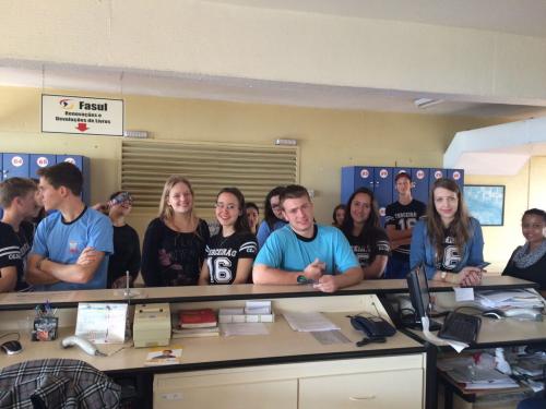 Os estudantes dos terceiros anos dos colégios do município e região estão conhecendo as estruturas da Faculdade Sul Brasil (Fasul). Recepcionados pelo professor da instituição, Samoel Nicolau Hanel, os estudantes passam por todos os ambientes da instituição sendo instruídos sobre os cursos disponíveis.