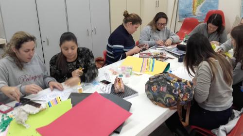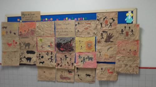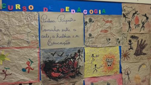 As estudantes do 2º período do curso de Pedagogia realizaram um trabalho de associação da formação docente. A reflexão teórico-metodológica ao fazer artístico com os temas “Pintura Rupestre e Arte Bizantina”.