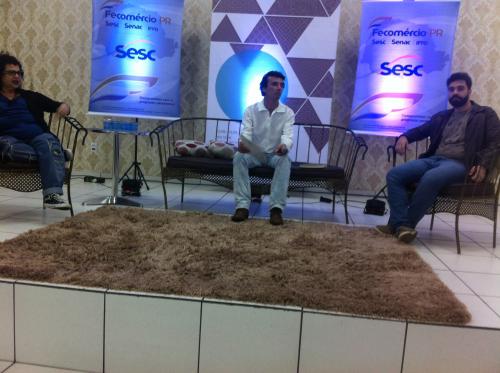 Para debater o assunto participaram o escritor Marcos Peres, de Maringá, e a escritora gaucha Cintia Moscovich e para nossa alegria, o debatedor da noite foi o professor Ney Arboleya, do colegiado de Pedagogia.