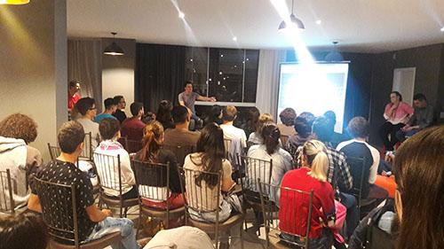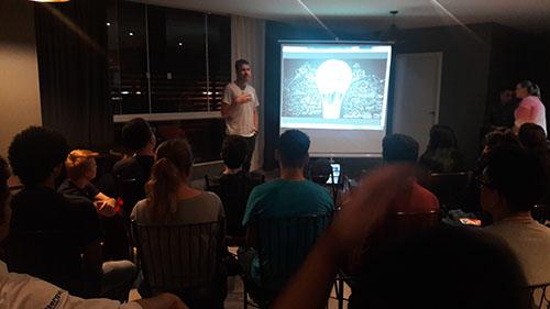Depois das visitas, os acadêmicos assistiram à uma palestra sobre startups com o Publicitário e atual Secretário de Desenvolvimento Econômico e Tecnológico, de Inovação e Turismo de Toledo, Paulo Victor Almeida. E em seguida foram apresentados aos representantes da Incubadora Santos Dumont, Tiago Rockembach e Fabiane Hoffmann. A incubadora foi criada para que os idealizadores de Startups, através de uma consultoria, possam amadurecer as ideias e tirá-las do papel.