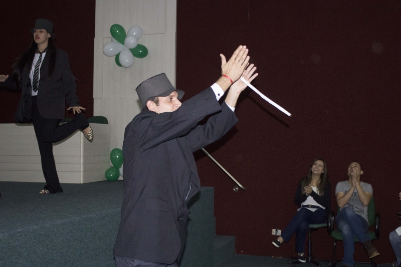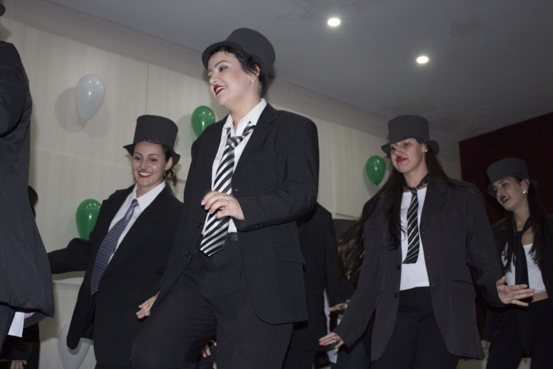 Noite divertida e de muita descontração entre alunos, professores e convidados - até um musical foi apresentado. "A ideia de interpretar o musical 'Laurel and Hardy' era para os professores apresentarem, mas aí pedimos para os alunos e fiquei muito surpresa com o empenho deles e o resultado da apresentação. Tudo isso é pra eles, pra se distraírem um pouco, porque semana que vem tem bastante trabalho", relata a professora Neusa Polotti.