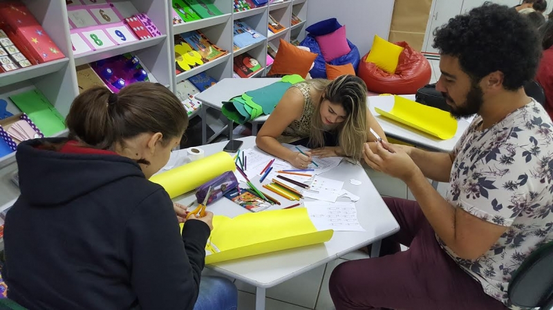 Durante as aulas teóricas, o professor Carlos Eduardo Alessio realizou a mediação dos conteúdos. Após a teoria, em aula prática, o professor Luciano Mezzaroba auxiliou os alunos no desenvolvimento da atividade.