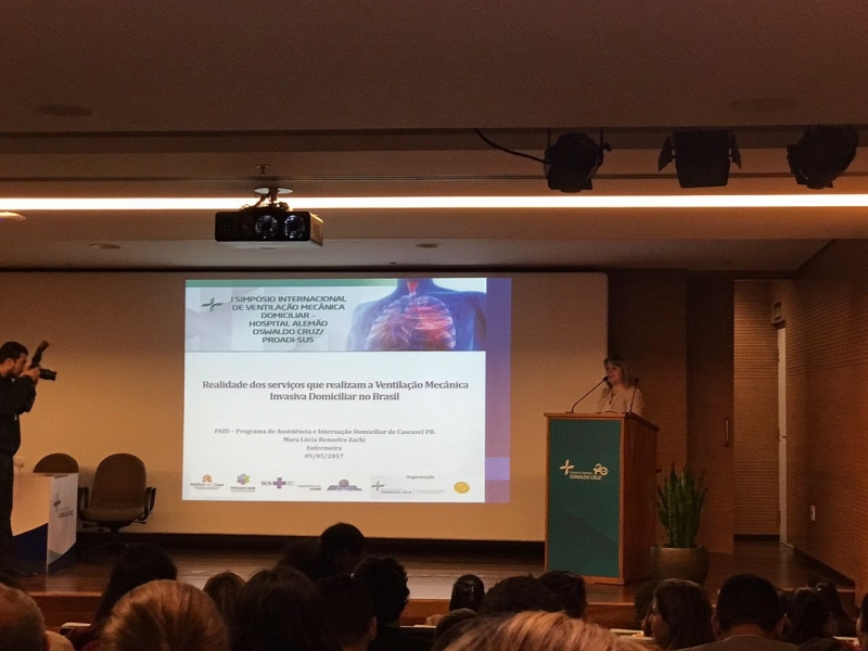 Nos dias 8 e 9 de maio, a professora do curso de Enfermagem do Centro Universitário FAG, Mara Renostro, participou do I Simpósio Internacional de Ventilação Mecânica Domiciliar. No evento, a docente não foi apenas espectadora: ela também apresentou uma experiência realizada no município de Cascavel na Mesa "Realidade dos Serviços que Realizam Ventilação Mecânica Invasiva Domiciliar no Brasil".
