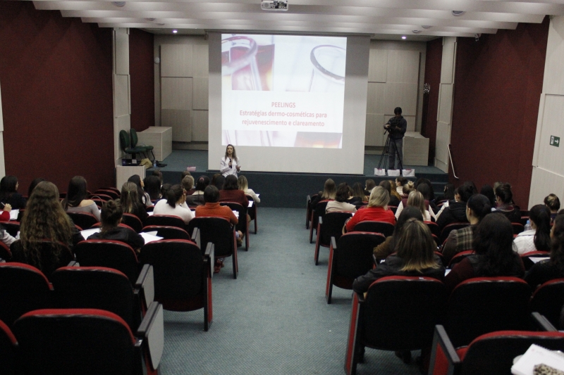 Em seguida as turmas acompanharam a palestra com Fernanda Pugioli, com o tema: Peelings estratégias dermo-cosméticas para o rejuvenescimento e clareamento. Para a acadêmica do 5º período, Lúcia Helena Queiroz Kunimatsu, "peeling" é um tema que chama muito a atenção. "A gente gosta muito dessa área. Na verdade todos os temas da Semana Acadêmica, é um momento único para aprender e descobrir coisas novas", relata.