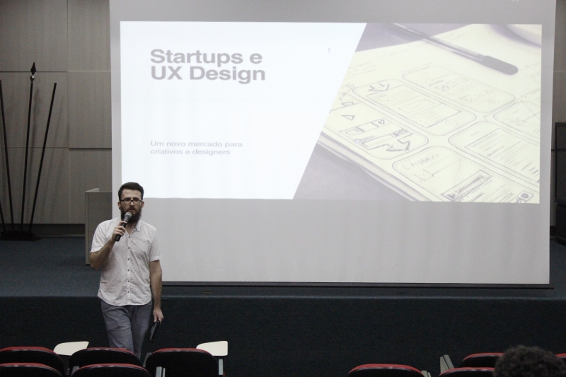 O User Experiance Design (UX DESIGN) é uma área da comunicação que abrange todos os aspectos da interação do usuário com a empresa, marca, seus serviços e produtos. É um quesito muito importante para as empresas que trabalham ou tem seus serviços divulgados na internet, afinal o que vale sempre é seu consumidor/usuário. "Existe um movimento muito forte já na cidade, muita gente envolvida nas Startups, tem grandes empresários na cidade na área de T.I que estão se envolvendo agora e nós temos uma dificuldade muito grande em atingir o público de Design Gráfico e PP. Acredito que muitos ainda não entenderam como podem colaborar, ou estão muito naquela visão de que são só agências", expõe o palestrante. "O Designer está muito acostumado a trabalhar dentro da caixinha, na agência ou no escritório. Então essa nova forma de design que a tecnologia está propiciando é um campo onde o profissional dessa área pode trabalhar inclusive empreendendo dentro do universo das Startups", complementa a Coordenadora do curso, Laila Rotter Schmidt.