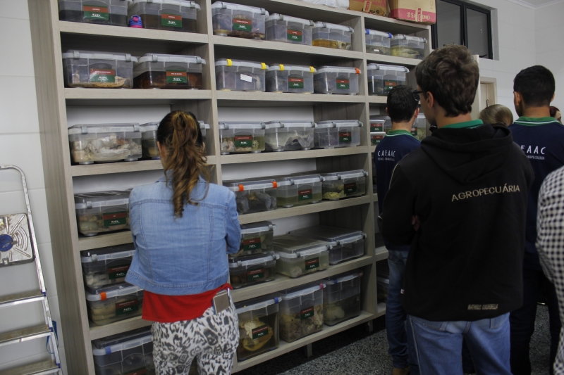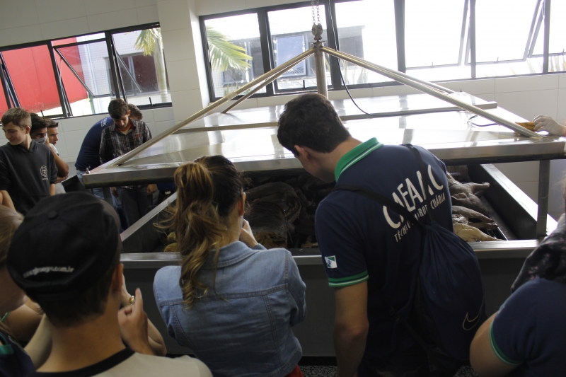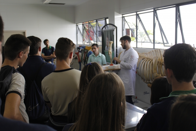 Um dos instrutores e estagiários que acompanhou a turma na área do Hospital Veterinário, Guilherme Czarmeski, que está no 5° período de Medicina Veterinária ministrou a oficina e pôde explicar os detalhes do hospital. "Aprender estudando a teoria é fundamental, mas na prática é muito melhor, basta a gente querer", explica Guilherme.