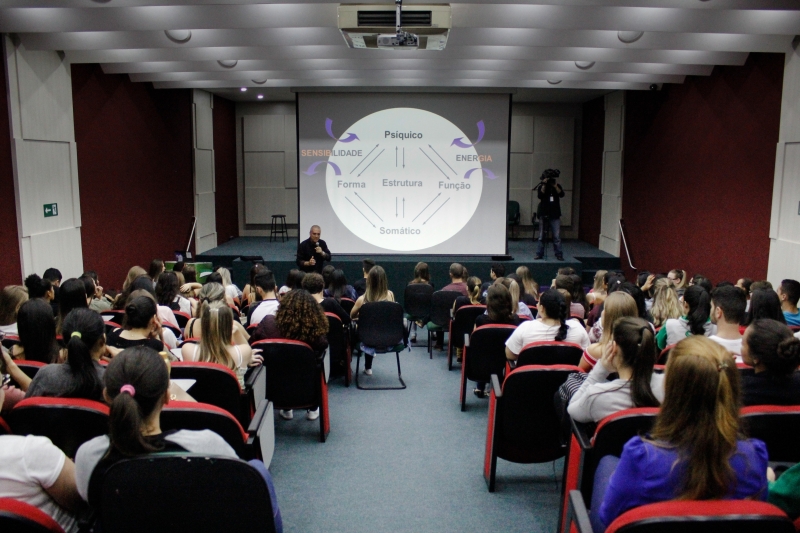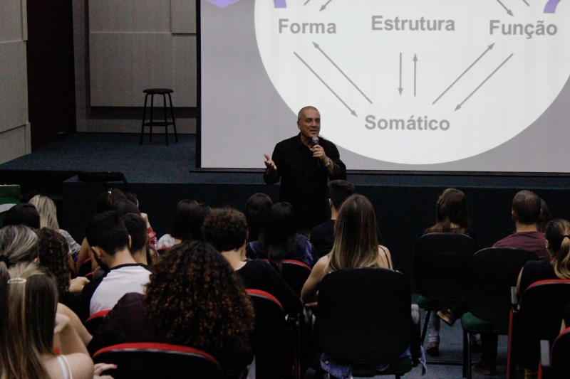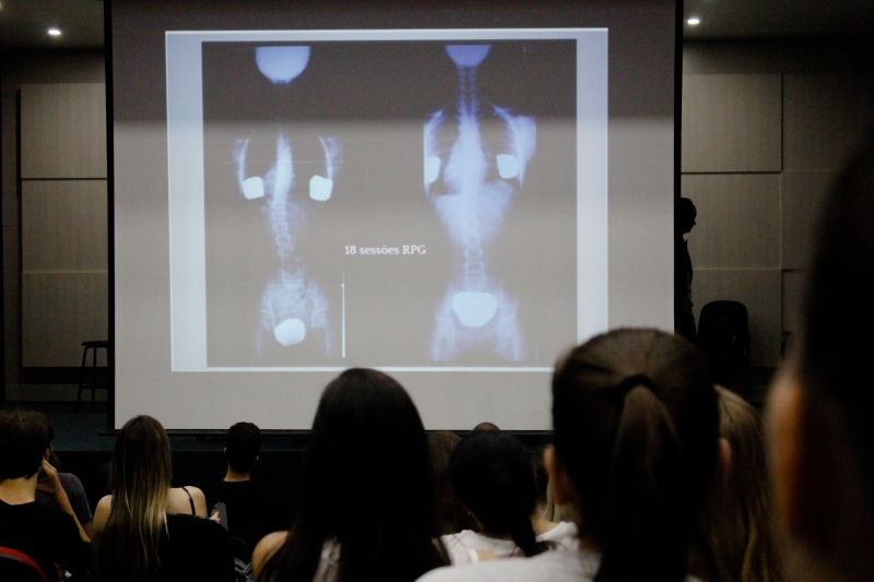 O Auditório do Bloco I do Centro Universitário FAG lotou com a presença dos alunos do curso de Fisioterapia e profissionais da área para a palestra do fisioterapeuta, Alberto Viana da Silveira, sobre RPG Souchard - (Reeducação Postural Global). Alberto, de forma muito dinâmica e explicativa, demonstrou essa área de grande interesse dos acadêmicos. "A fala dele é muito objetiva e clara. Gostei muito de ouvi-lo e entender mais sobre RPG, foi válido", relata a acadêmica do 9º período, Andréia Tomazelli.