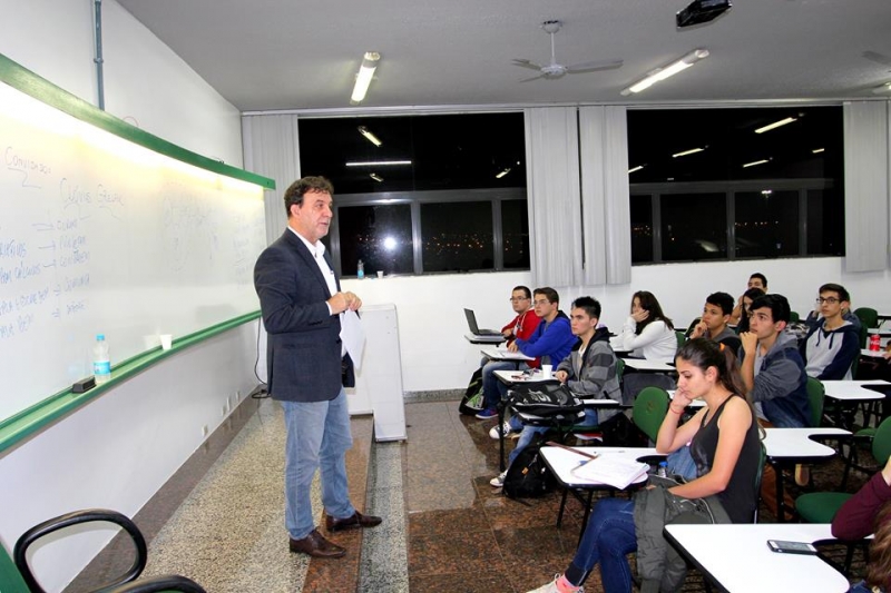A professora das disciplinas de Assessoria de Imprensa do curso de Jornalismo da FAG, Soraia David, tem trazido para a sala de aula nomes representativos da área para falar sobre a atuação e tirar dúvidas dos acadêmicos. No dia 22 de maio, os acadêmicos do 1° período do curso receberam a visita de Clóvis Grelak, Assessor de Imprensa há mais de vinte anos nas áreas de automobilismo e motovelocidade para uma palestra.