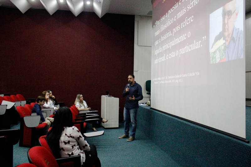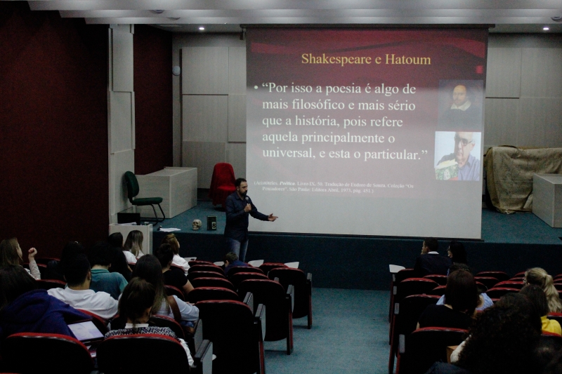 Para encerrar a homenagem, o professor doutorando Marcos Douglas Pereira conduziu a palestra com o tema "William Shakespeare: o drama familiar universal em Hamlet em seu eco em Dois Irmãos, de Miltom Hatoum".