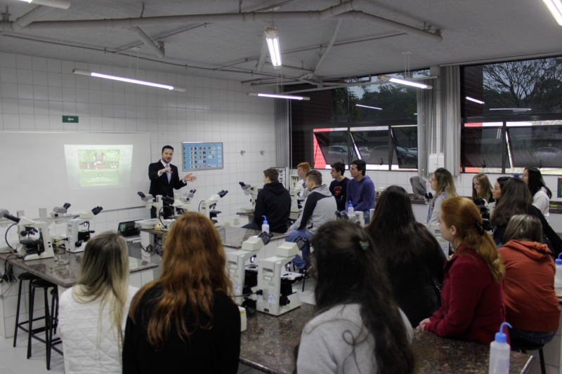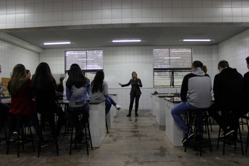 Na quarta-feira (31), a turma do 3° ano do Ensino Médio do Colégio Passos Firmes de Matelândia participou do "Ciclo de Ideias para seu futuro - Cursos e Profissões", projeto da FAG que oferece cursos e oficinas aos alunos do Ensino Médio.