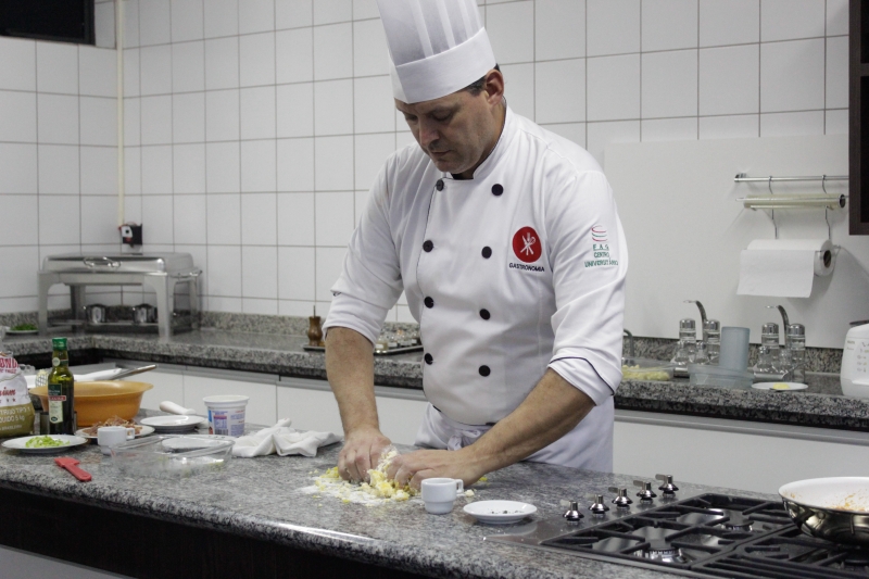 Este é o segundo ano que o Chef de Cozinha, Alexandre Bressanelli, está à frente de cursos de alta gastronomia no Centro FAG. Pessoas apaixonadas pela cozinha, que querem aprender receitas diferentes ou novas técnicas, formam os grupos que se encontram mensalmente no campus da Instituição. As aulas são realizadas no Laboratório de Nutrição no Bloco IV.